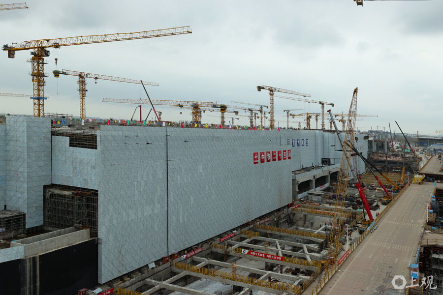 施工中,建设团队创新应用智能温控系统、自动喷淋养护装置、机器人自动整平、机器人自动焊接等一系列先进工艺工法及智能化工装设备,为工程安全质量提供了硬核保障。作为服务国家战略和上海长远发展的超级工程,东方枢纽上海东站是上海第二大综合交通枢纽。